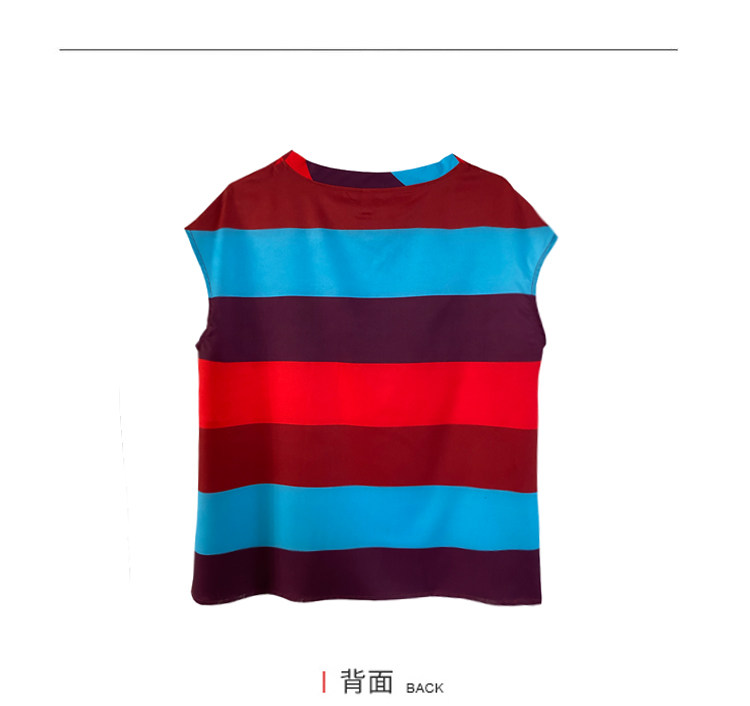 Longing for life Song Dandan the same clothes color striped t-shirt women's summer Korean version loose round neck short top