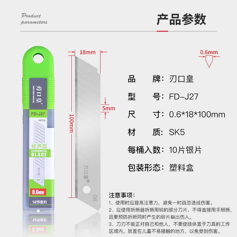 Cutting edge imperial beauty artificial knife piece large size 18MM beauty slit wallpaper blade thickened 0 6 cardboard leather with full silver close edge J27