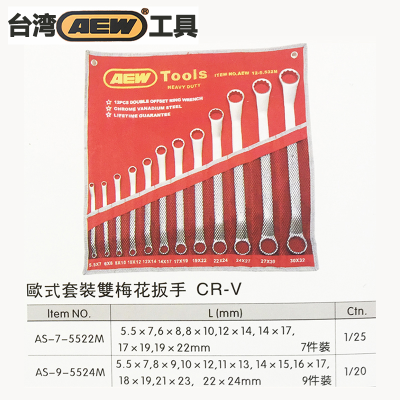 Imported Taiwan AEW European metric double plum wrench AS-7-5522M closed wrench 5 5-22 7 pieces