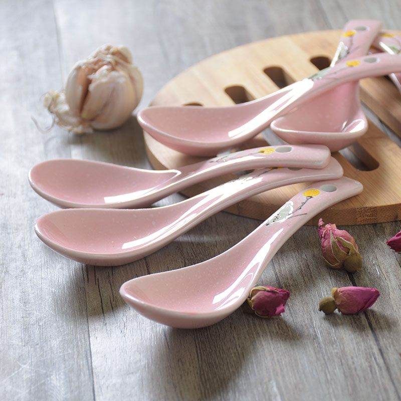 Ceramic spoon Japanese underglaze color eating spoon pastoral hipster spoon dining room home Net red spoon creative