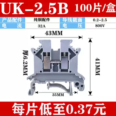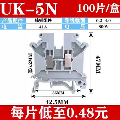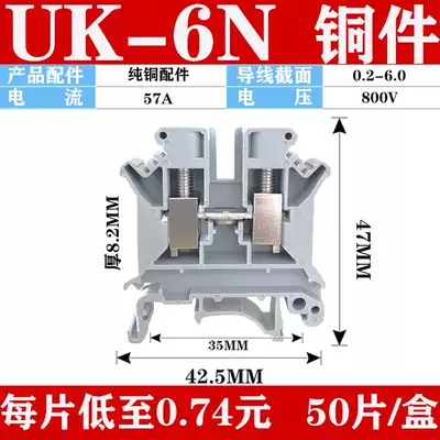 Copper piece uk-2 5B terminal block voltage rail 2 5N 3N 5N 6N 10N MM square non-slip wire