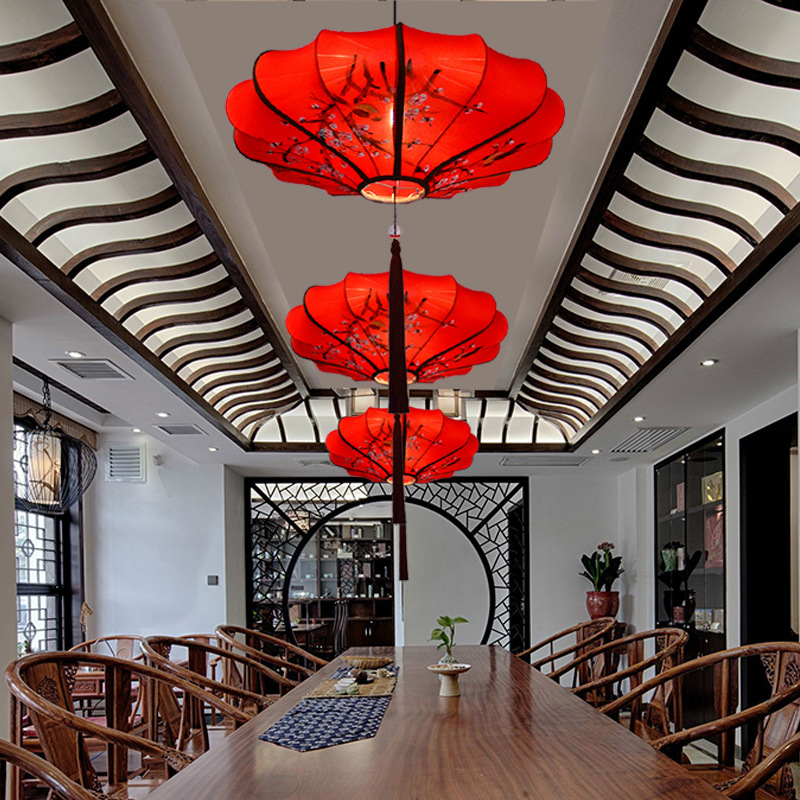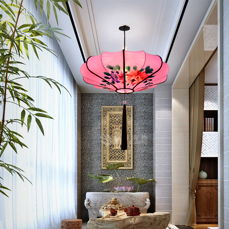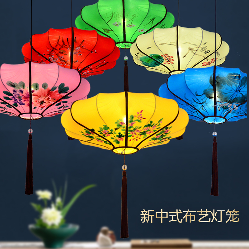 Chinese Flying Saucer Cloth Art Chandelier Opening Hotel Hand-painted Country Painting Classical Lamps China Wind Imitation Ancient Hand Painted Red Lantern