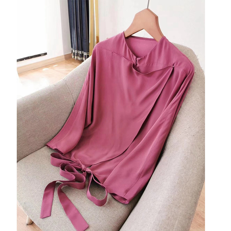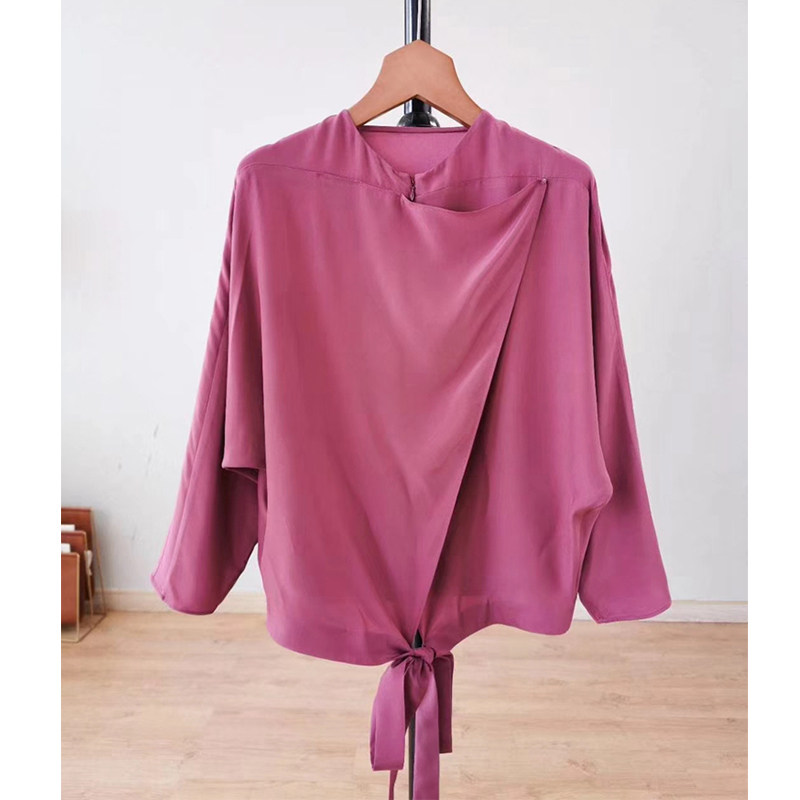 High Order Elegant Rouge Sea Tang Red Willpower 22 Chunqiu Dong Qing's Tongan Design Feel Heavy-Genuine Silk Shirt