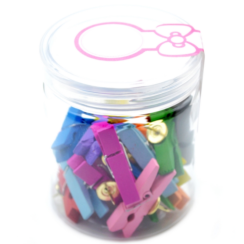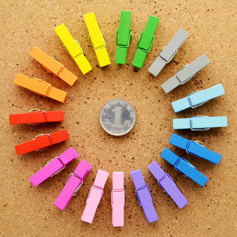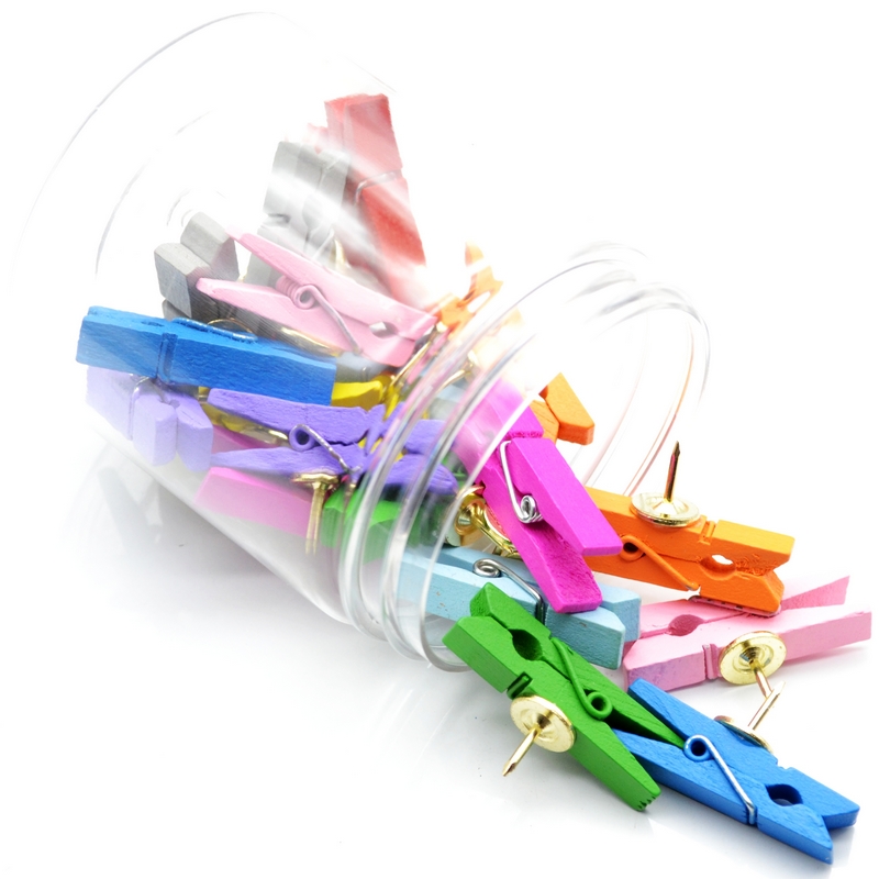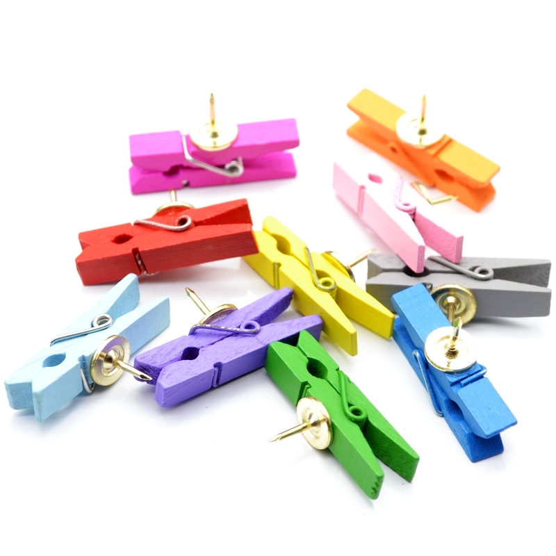 20 boxed photos of colorful wooden clips press nailed I-nails creative cork push nails can nail wall nails