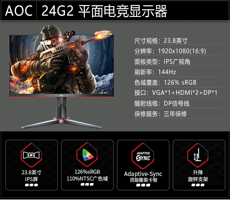 AOC 24G2 Little King Kong 144Hz display 24-inch IPS gaming 1ms response computer LCD screen game