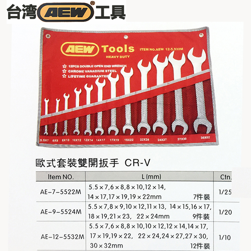 Imported Taiwan AEW European-style suit AE-12-5523M Double open gateway wrench 5 5-32mm 12 pieces