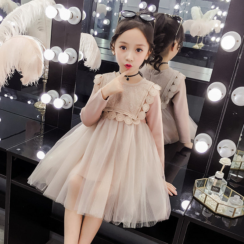 Girls' spring dress 2021 New Korean version of Super foreign pie mesh dress little girl lace spring and autumn princess dress tide