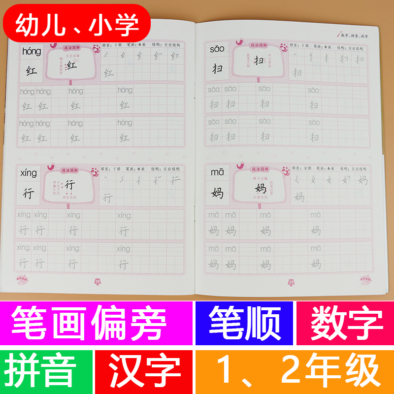 Young children connecting 3-6 years old primary school students practice copybook strokes radical entrance basics entry tracing red copybook matte grid pinyin digital Chinese characters hard pen calligraphy practice calligraphy pencil pen Shun regular script