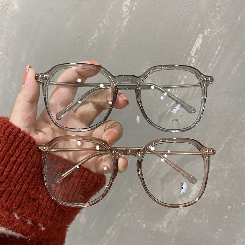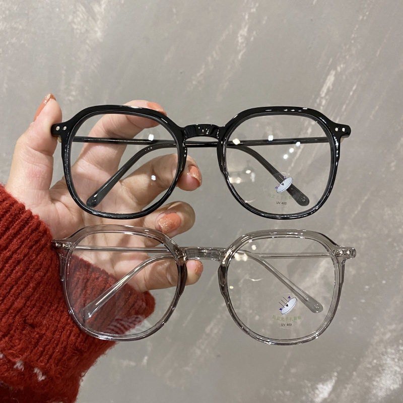 Round face black frame plain face artifact glasses female anti-blue light anti-radiation myopia can be equipped with large face flat mirror retro men's tide