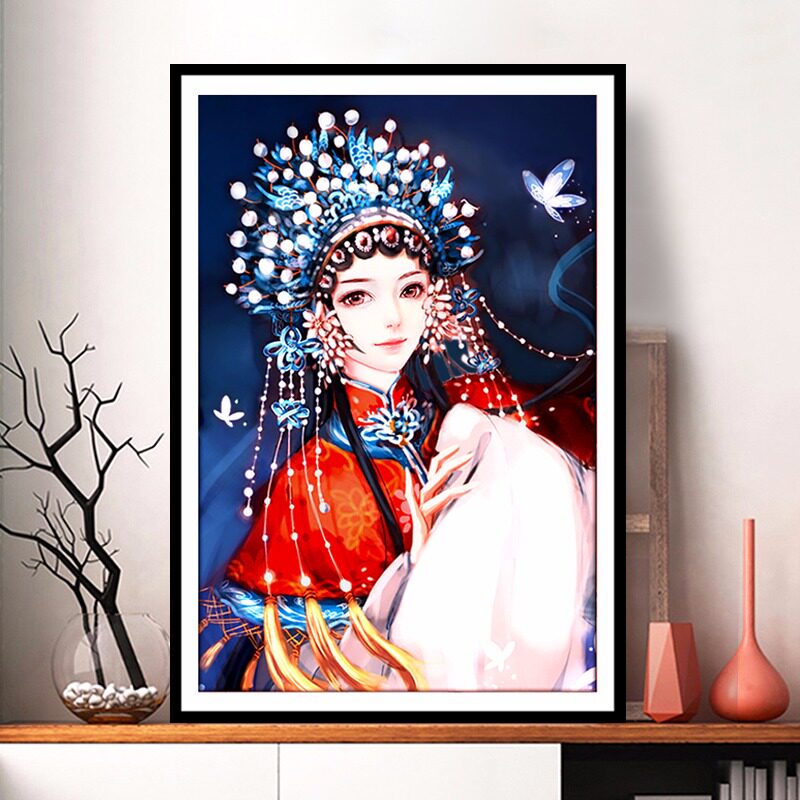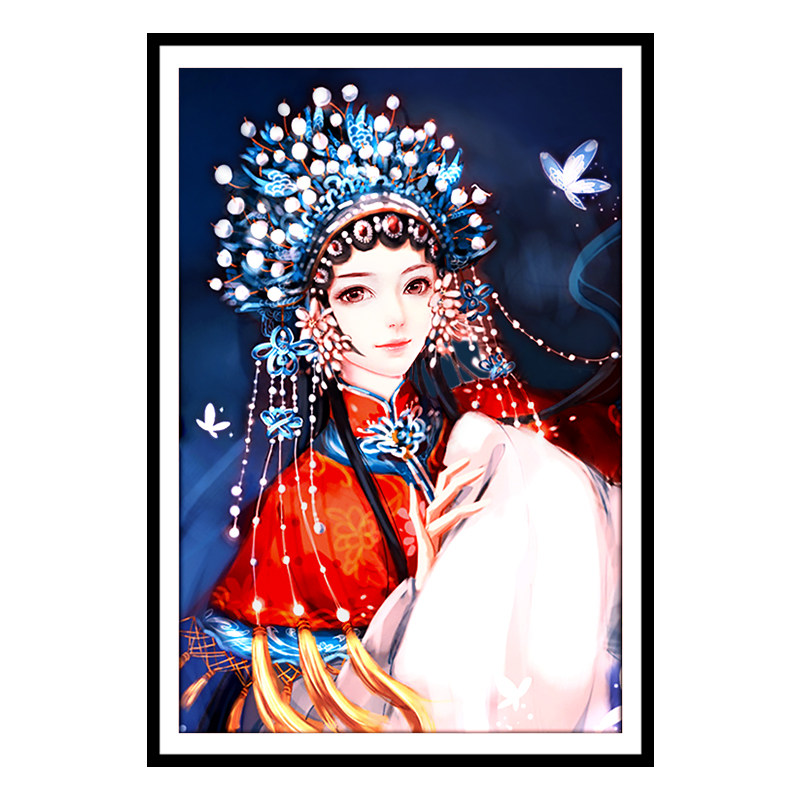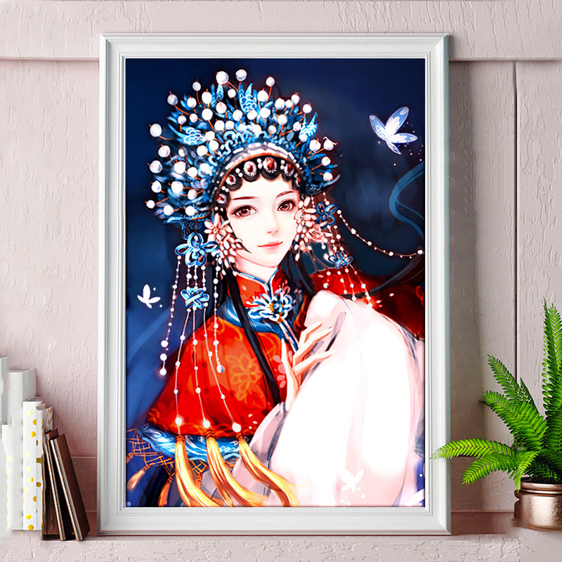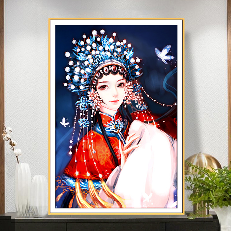 Ancient style beauty cross stitch 2022 new living room bedroom small handmade thread embroidery own embroidery Peking Opera Huadan Jinghong