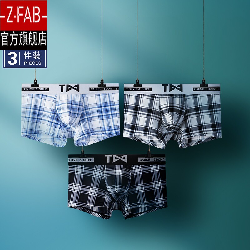 Men's underwear men's boxer ice silk trend personality youth plaid seamless ultra-thin tide brand boxer pants