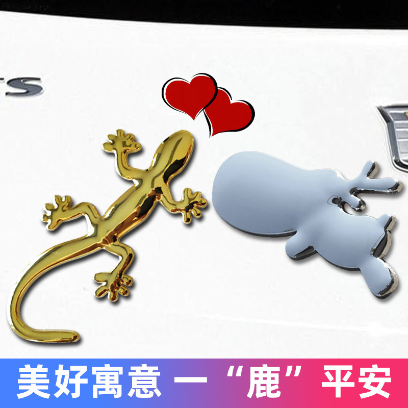 Yilu Ping An car sticker creative personality car label modified metal label Gecko car sticker tail label decoration 3D three-dimensional