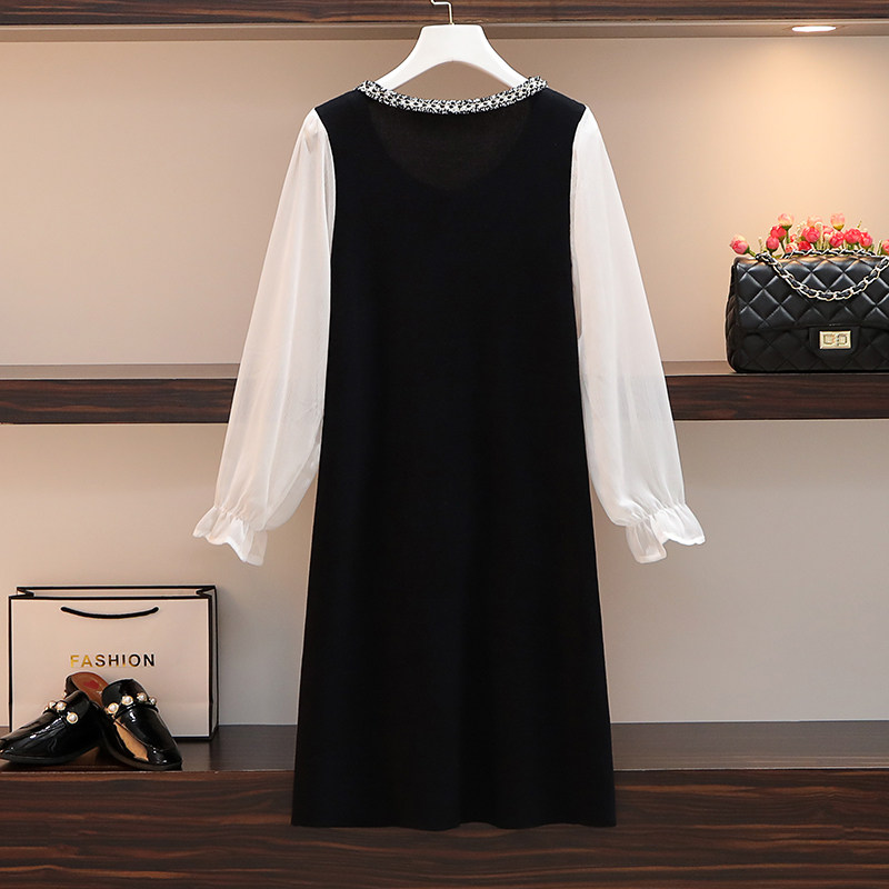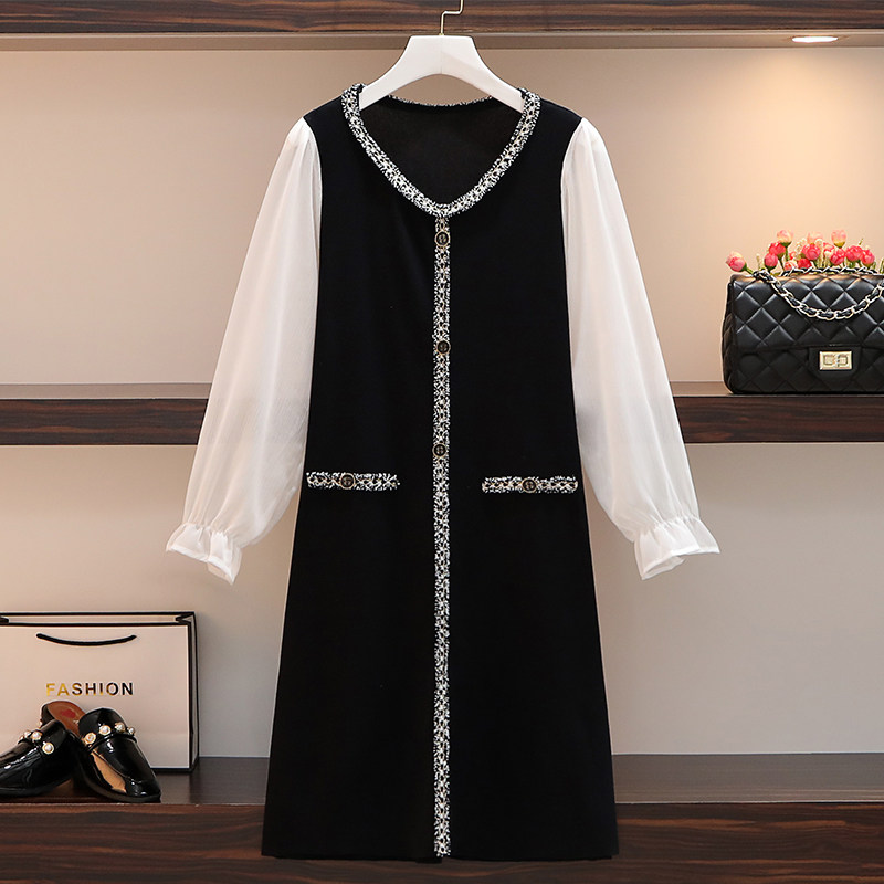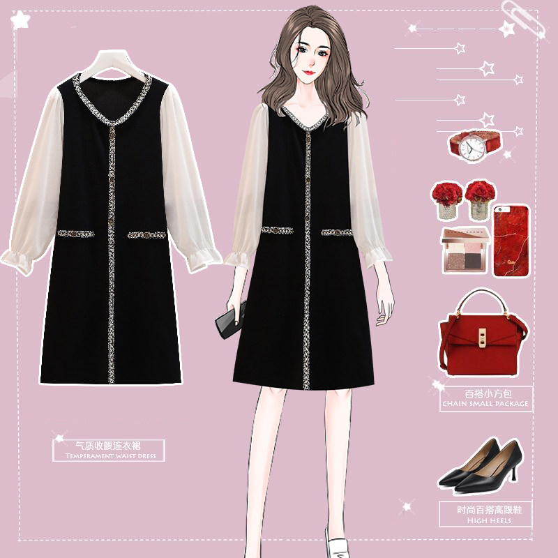 Large size women's dress 2022 spring summer dress new display slim cover with slew sleeve temperament small scented wind cover pregnant woman foreign dress