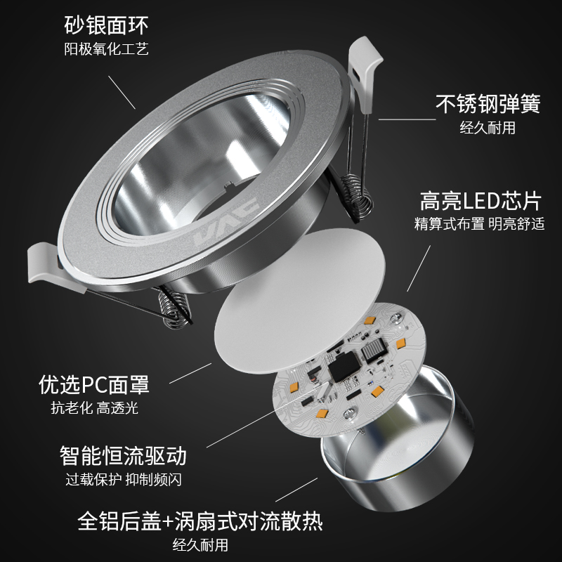 NVC Lighting LED Downlight 3w Embedded Living Room Ceiling Ceiling Ceiling Hole Light Hole Light Simple Light Three-color 5w