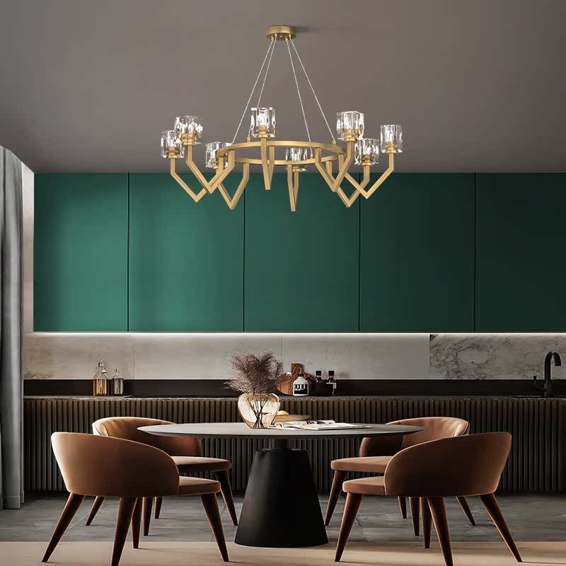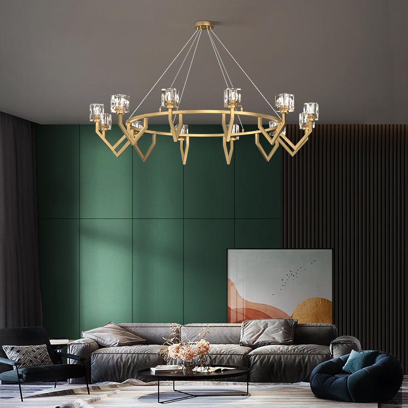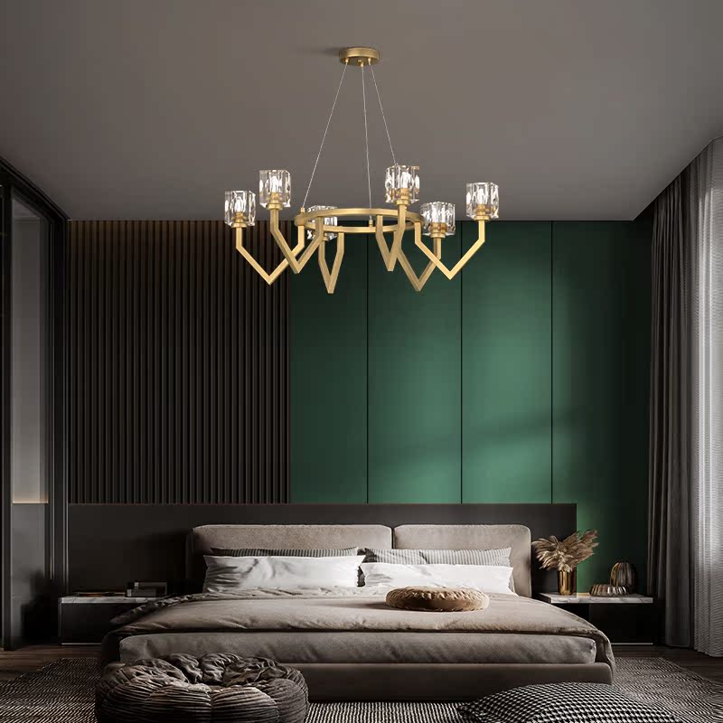 Zhenmeiju postmodern light luxury all copper lamp atmospheric simple new designer bedroom dining room living room crystal chandelier