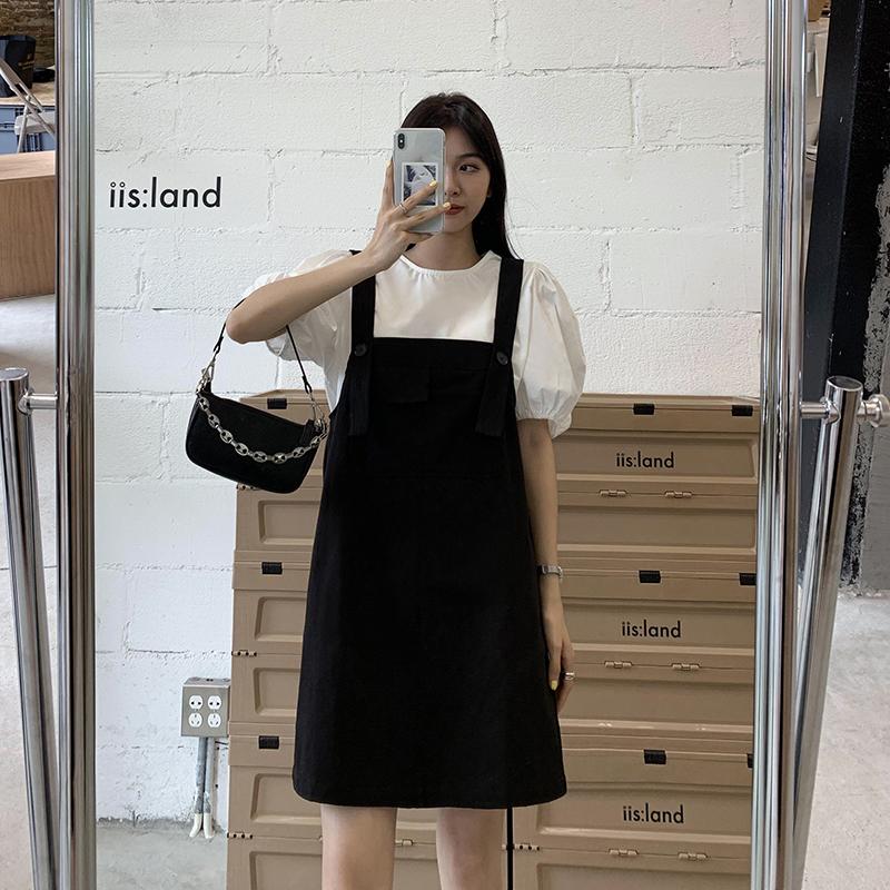Japanese white tooling suspender skirt female loose slimming foreign style age reduction 2021 summer French suspender dress