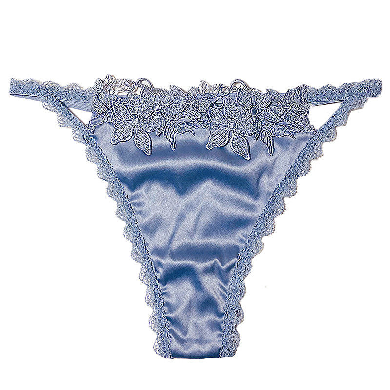 European and American sexy thong women's fashion lace edge embroidery without marks tempting quick-drying briefs light luxury satin bottoms