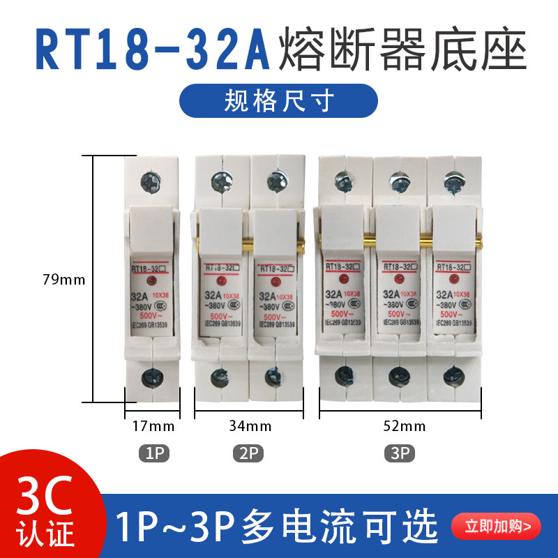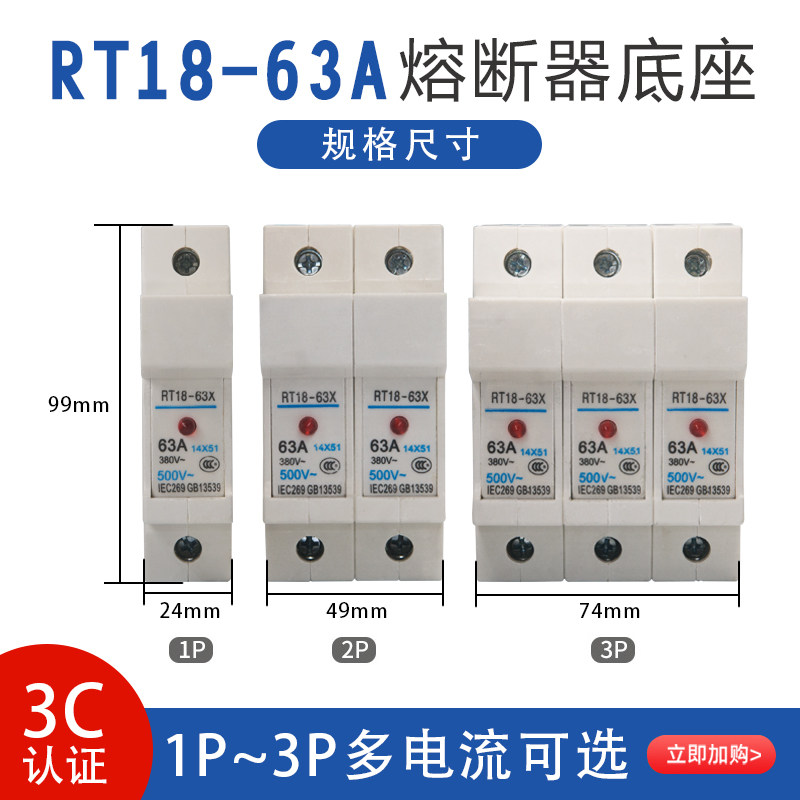 Fuse RT18-32A 63A 1P2P3P rail press-mounted fuse fuse base with indicator light