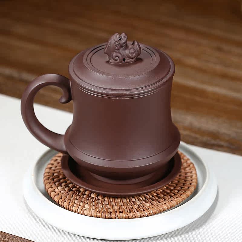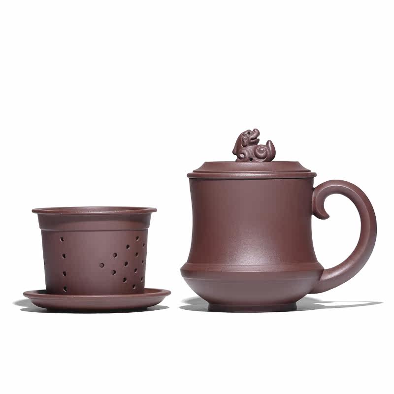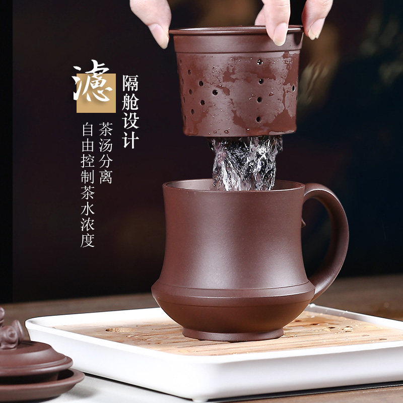 Yixing purple sand cup with lid Full hand-made liner filter gift tea cup Tea set Purple mud Wolong liner cup