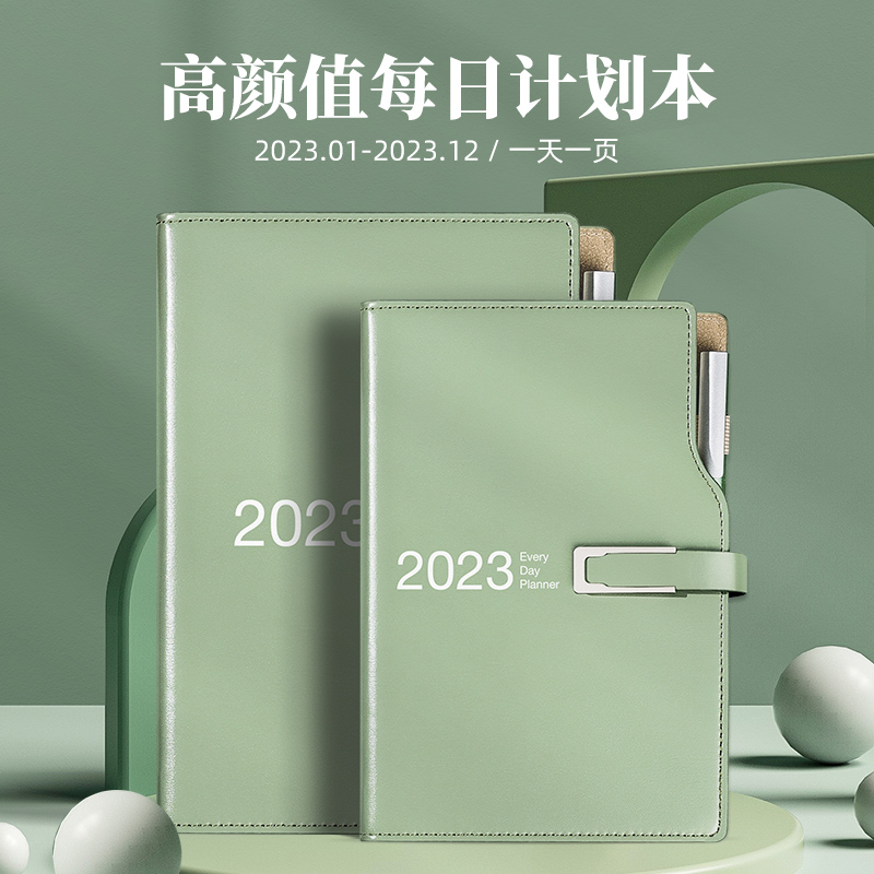 A5 Fruit Green (including pen all year 2023) A5 Lake Blue (including pen all year 2023) A5 light purple (including pen all year 2023) A5 soft pink (A5)