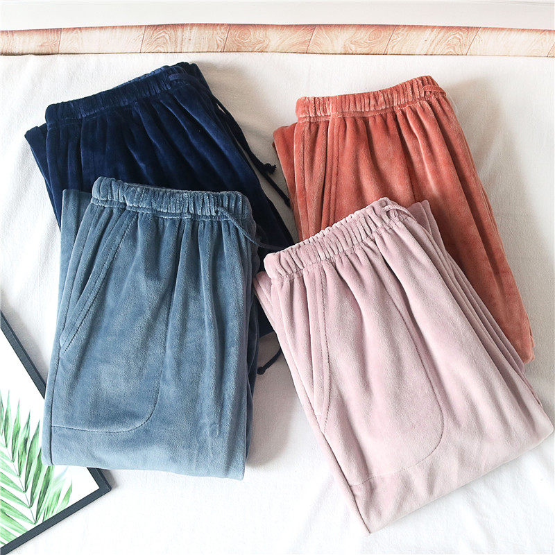 Single Piece Sleeping Pants Female Couple Men's Autumn Winter Island Suede Warm Not Thickened Coral Suede Casual Outwear Long Pants