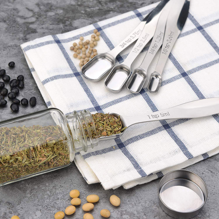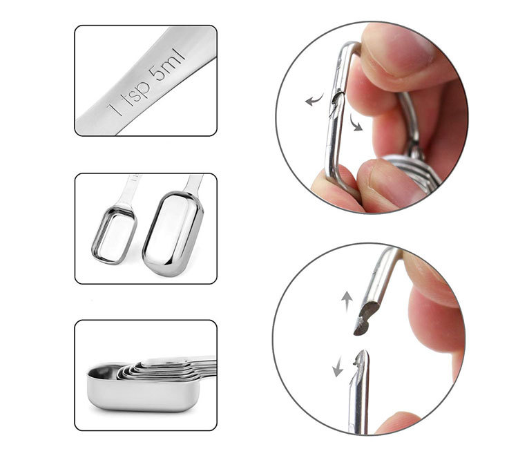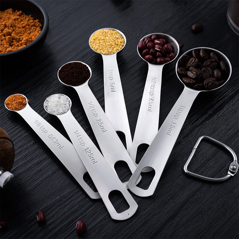 Six - piece sets of baking salt stainless steel square header spoon easy to collect kitchen with a scale tea milk powder