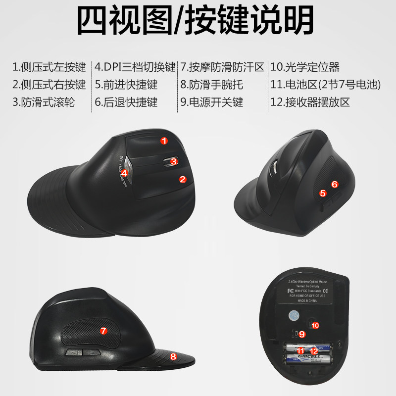 New wireless vertical mouse computer upright side grip large model male drawing hand ergonomic non-slip mouse