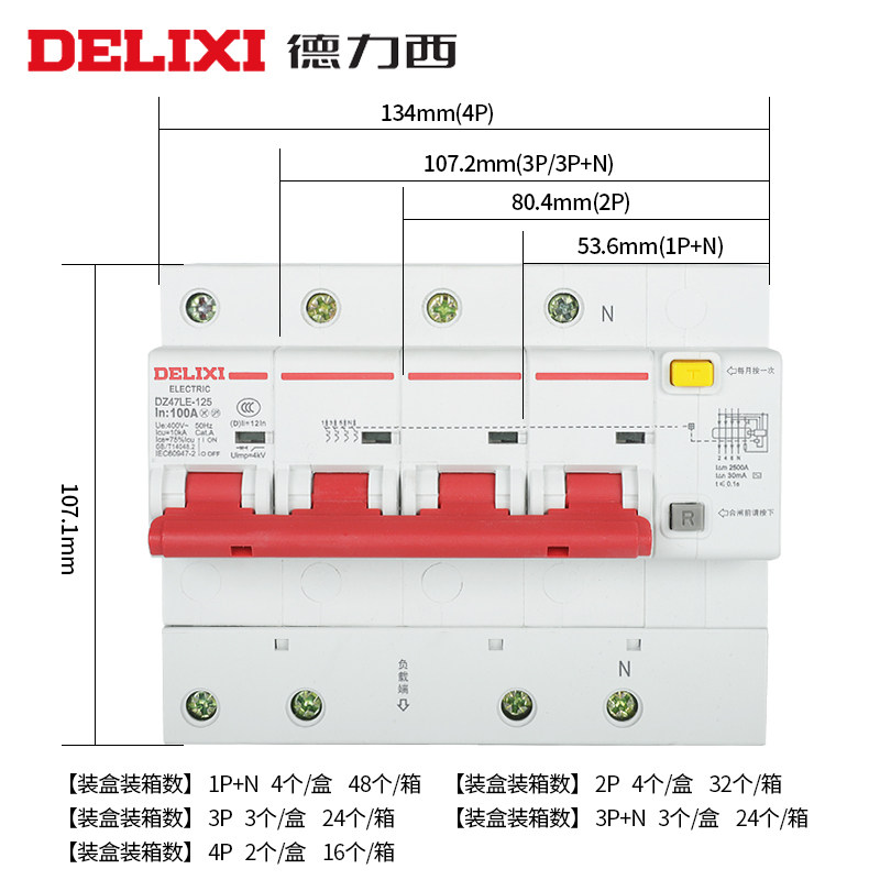 Delixi DZ47LE-125 large current 1 circuit breaker 2 leakage 3 protects 80 switch 4P100A leakage three phase