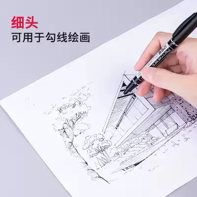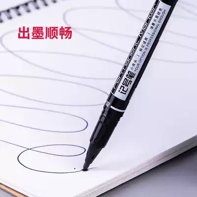Deli small double-headed oily marker pen Black small-headed thin-headed hook line pen Children's painting students use mike pen Art students stroke special color non-fading waterproof signature pen CD pen marker
