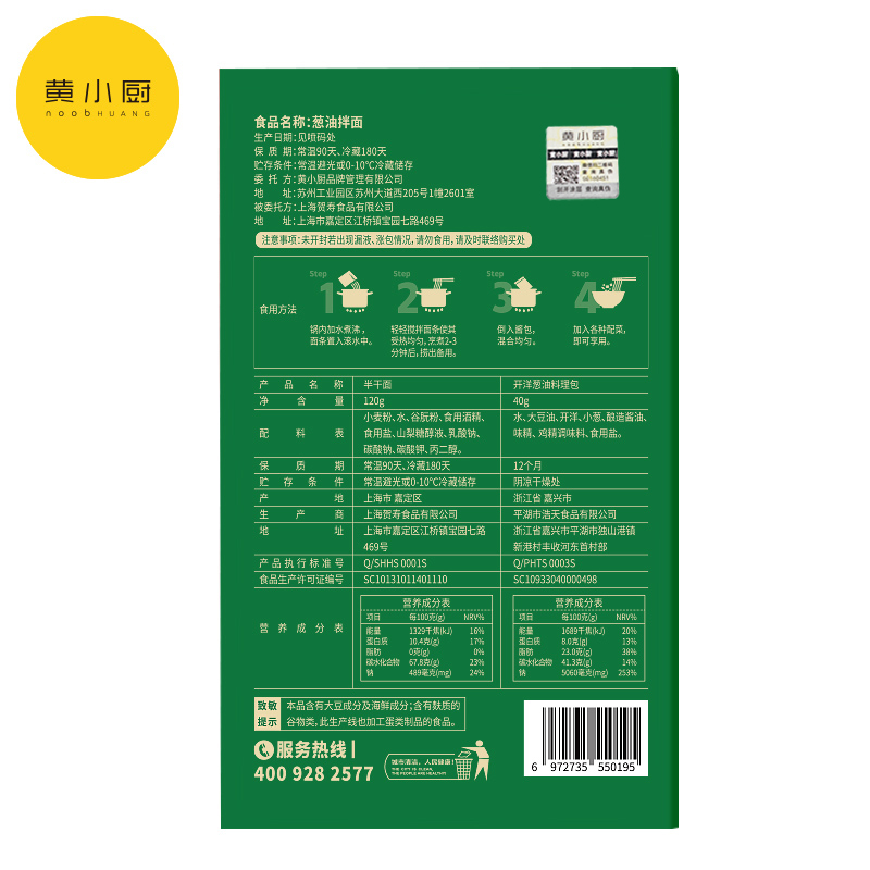 (Huang Lei) Yellow Cuisine Onion Oil Mix Noodles with Fried Noodles Non-Fried Breakfast I.e. Noodles Shanghai Shallot Oil 2 Boxed