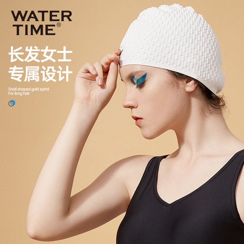 WaterTime Swimming Cap Woman Long Hair Waterproof without Leehead Silicone Increase Comfortable Care Ear Fashion Bubble Cap Man