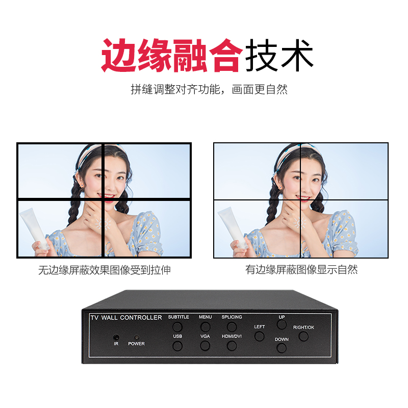 Four high-definition LCD TV splicing box multi-screen picture control wall 1 in 4 out splicing processor