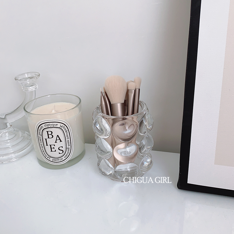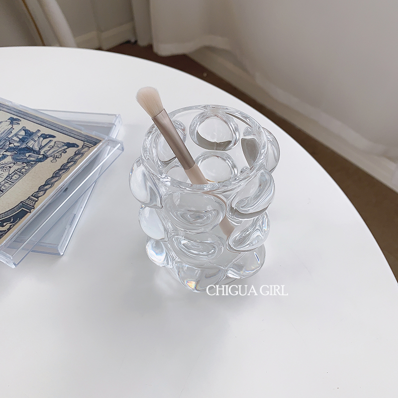 chigua Girl Korean in the same round ball glass pen transparent decoration of makeup drum desktop fittings