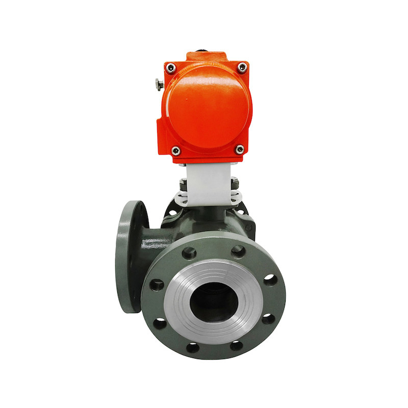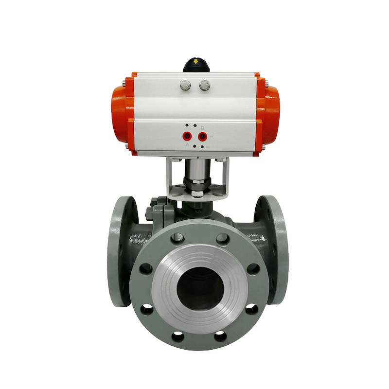 Pneumatic three-way ball valve Q644 45F-16C steering valve L T flange ball valve diverter valve DN15-200