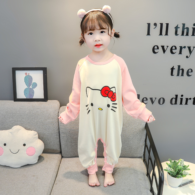 Children's sleepwear spring and autumn girls' children's pure cotton long sleeves baby spring clothes one-year-old girl's spring and baby's home clothes
