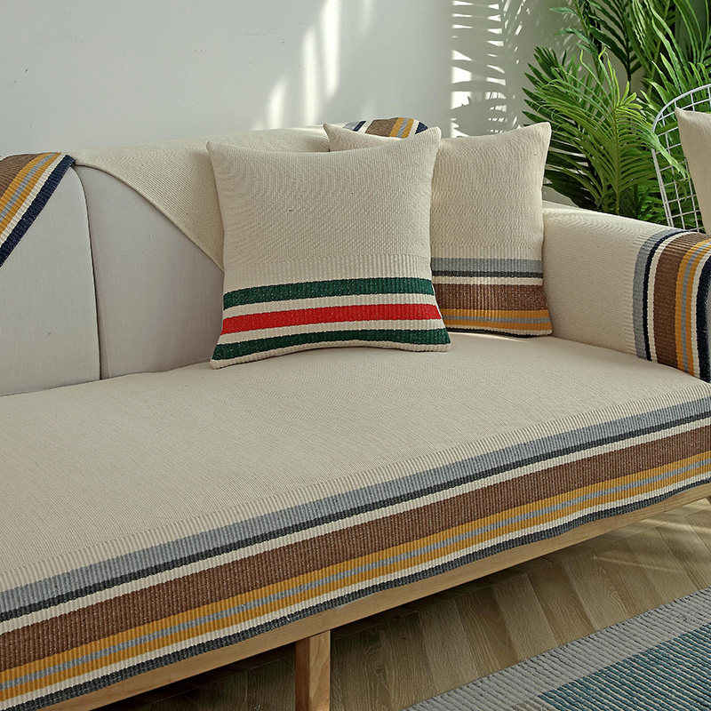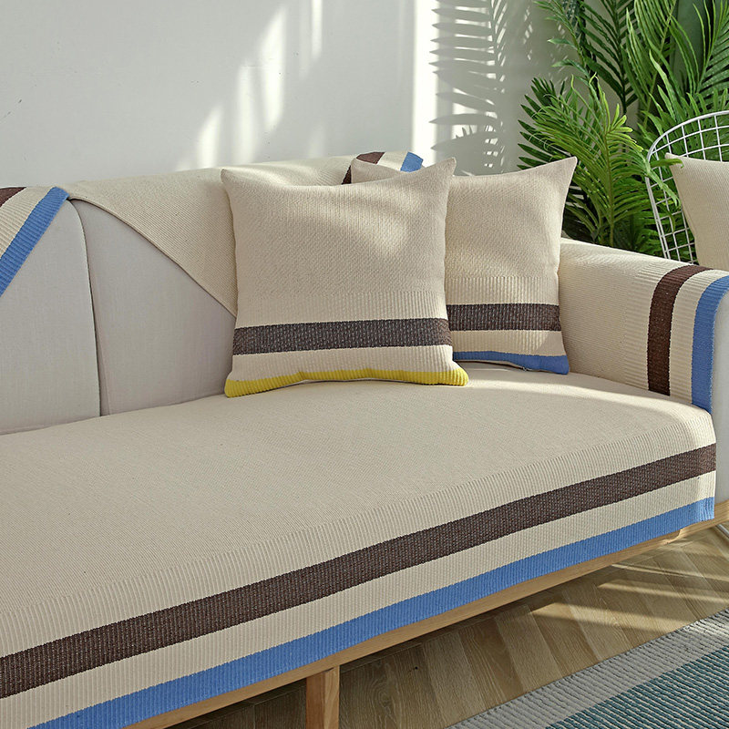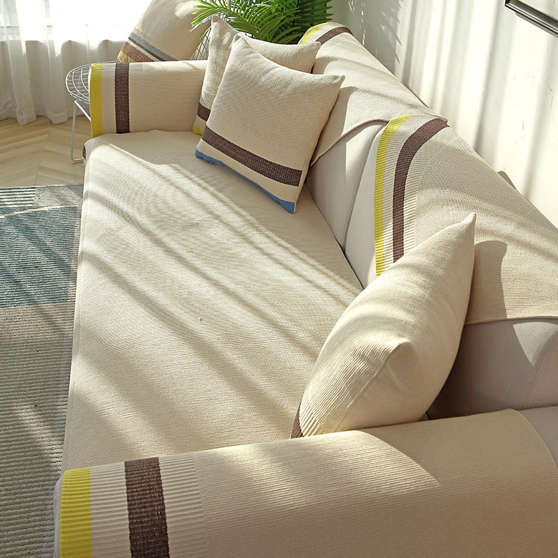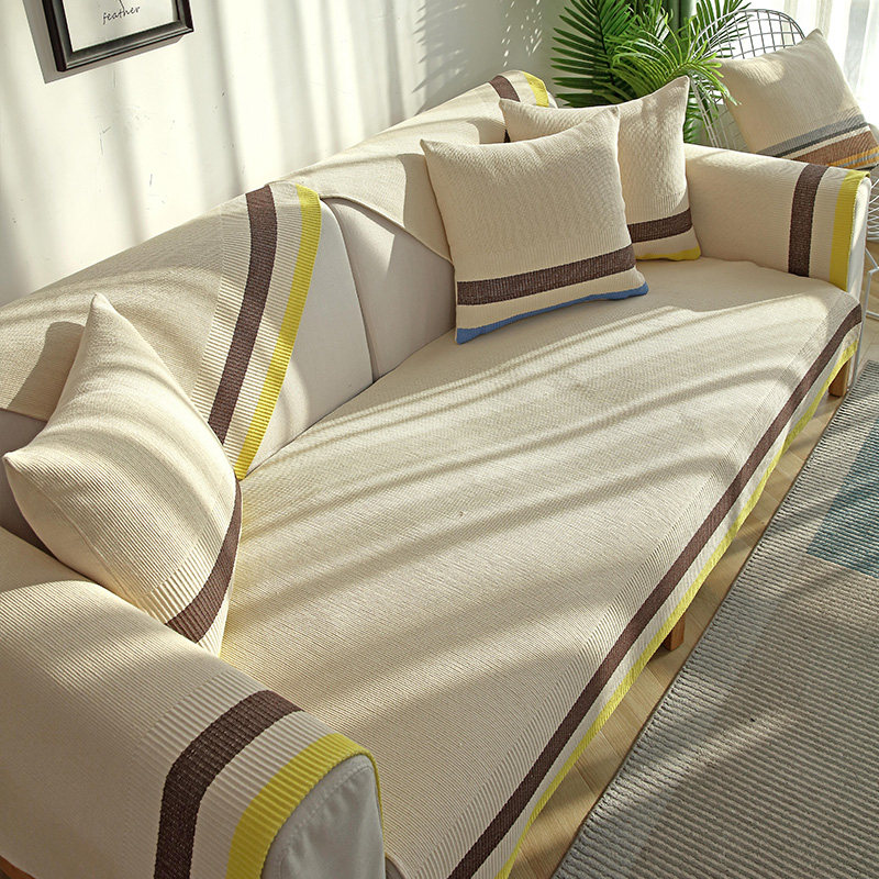 Cotton sofa pad four seasons of general anti-slip solid wood cushion striped sofa cover backward mat handgebar customized