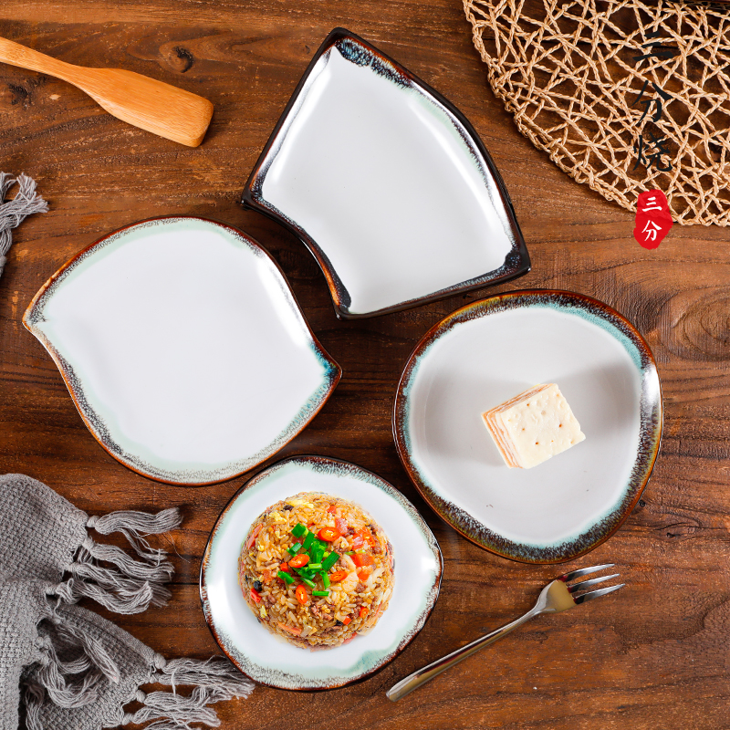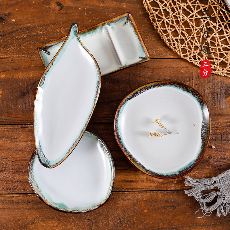 Three-point yaki original Japanese creative rectangular ceramic plate Sushi plate Sashimi plate Specialty dish tableware Commercial