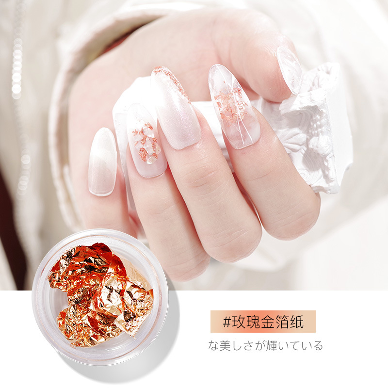 Manicure gold platinum foil silk rose gold foil paper fragments new phototherapy nail polish glue decoration Japanese gold tin foil paper