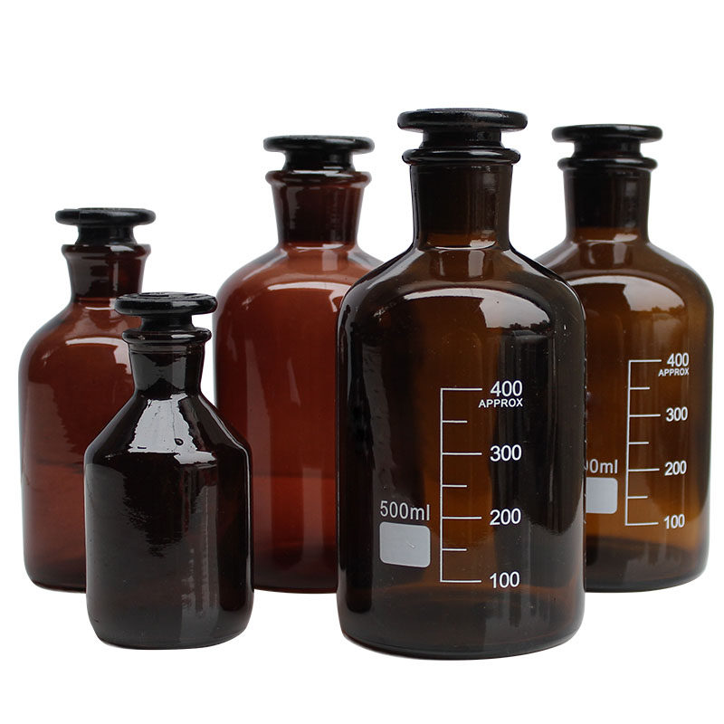 The white small mouth reagent bottle lab brown glass bottle sample seal canned alcohol bottle 500 1000ml