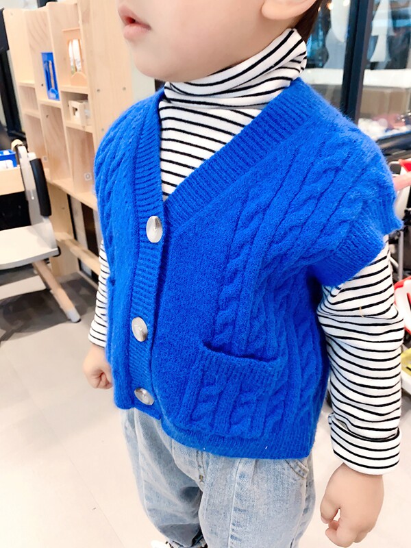 Small children twist knitted vest boy baby Korean spring and autumn dress style pure color wool vest top