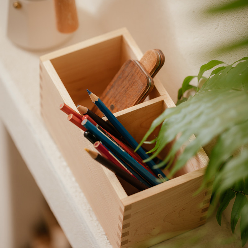 Double lattice pen holder (beech wood) Double-lattice pen holder (maple wood) Single lattice pen holder (beech wood) Single lattice pen holder (maple wood) Single-lattice pen holder (black walnuts) Four-lattice containing box (beech wood) Four