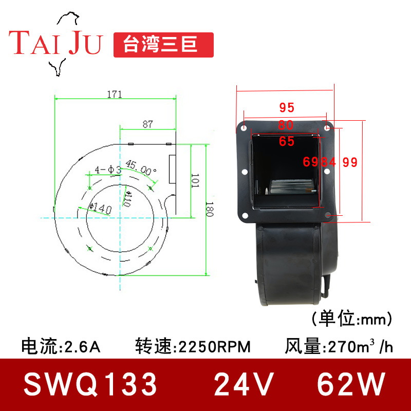 Taiwan Three-giant small working frequency centrifugal fan 24V blower SWQ133HD2 turbo ventilator