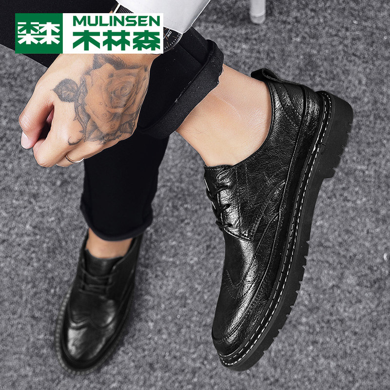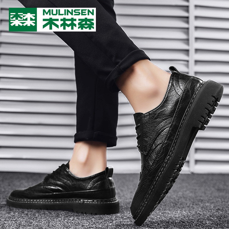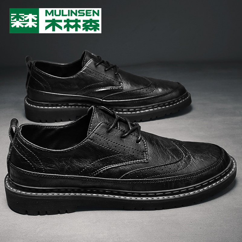 Mulinsen men's shoes 2022 new autumn business dress trend Korean version all-match British casual leather shoes men's trendy shoes