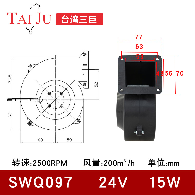 Taiwan Three-giant SWQ097 43A centrifugal blower 24V blowers DC DC Fan 53 Motor FLQW097