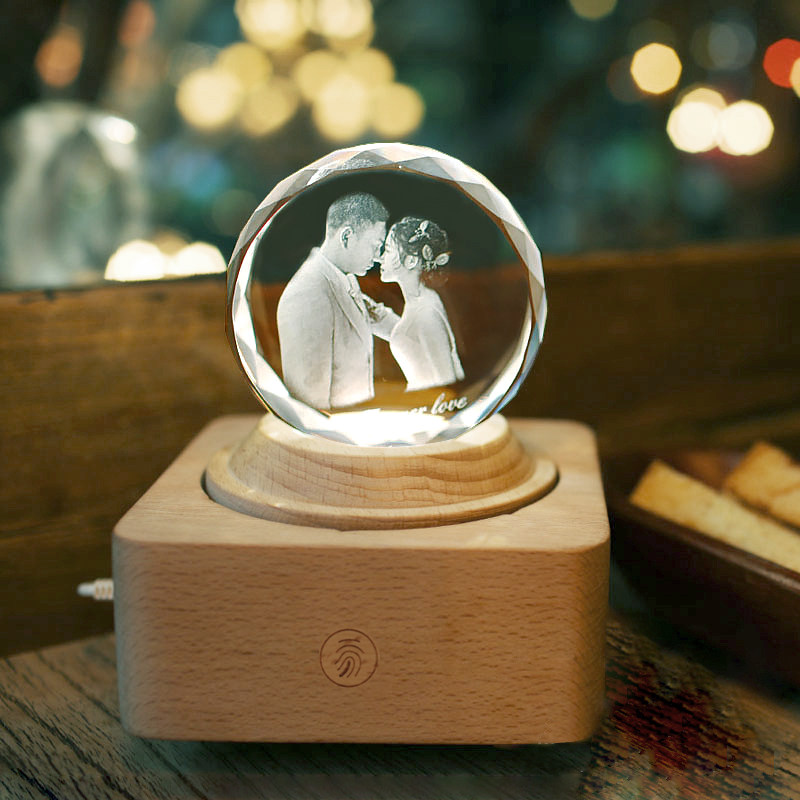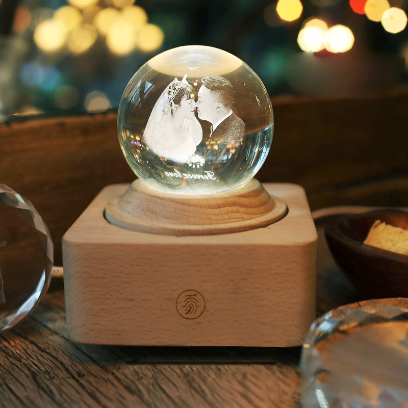 Crystal ball bluetooth speaker rotating photo custom girls birthday wedding anniversary gift Valentine's Day music box
