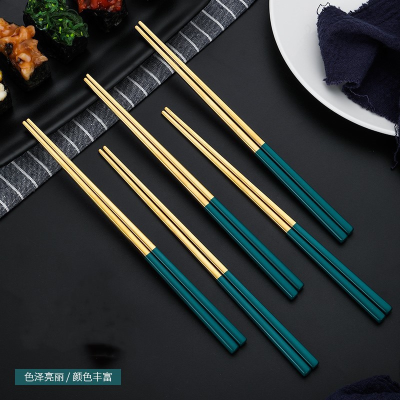 Valley State 304 stainless steel chopsticks INS light and luxurious style home square chopsticks Family public chopsticks Non-slip and mildew resistant