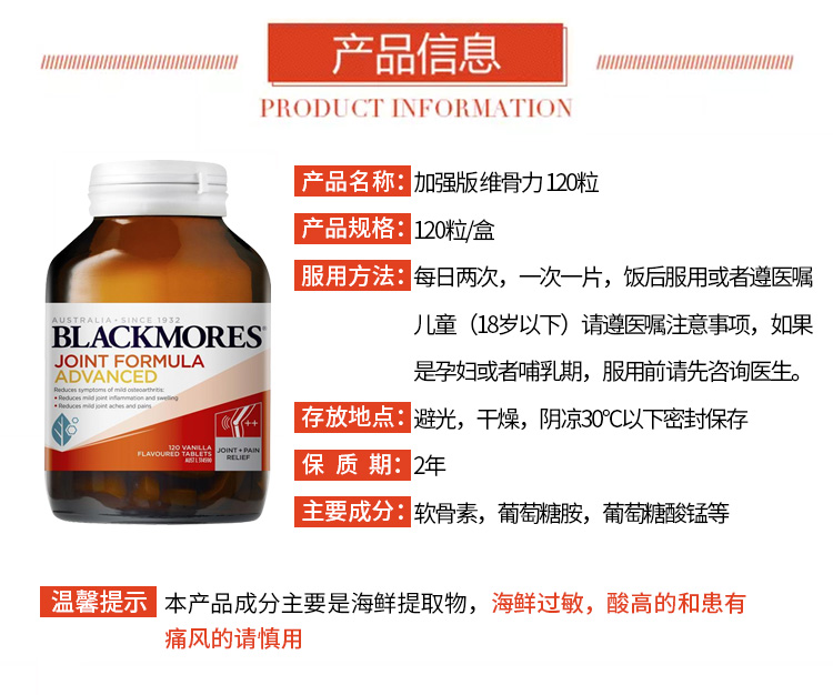 Australia blackmores vitamin bone strength 3 times strengthens the supplementation of glucosamine cartilage joint spirit 120 capsules