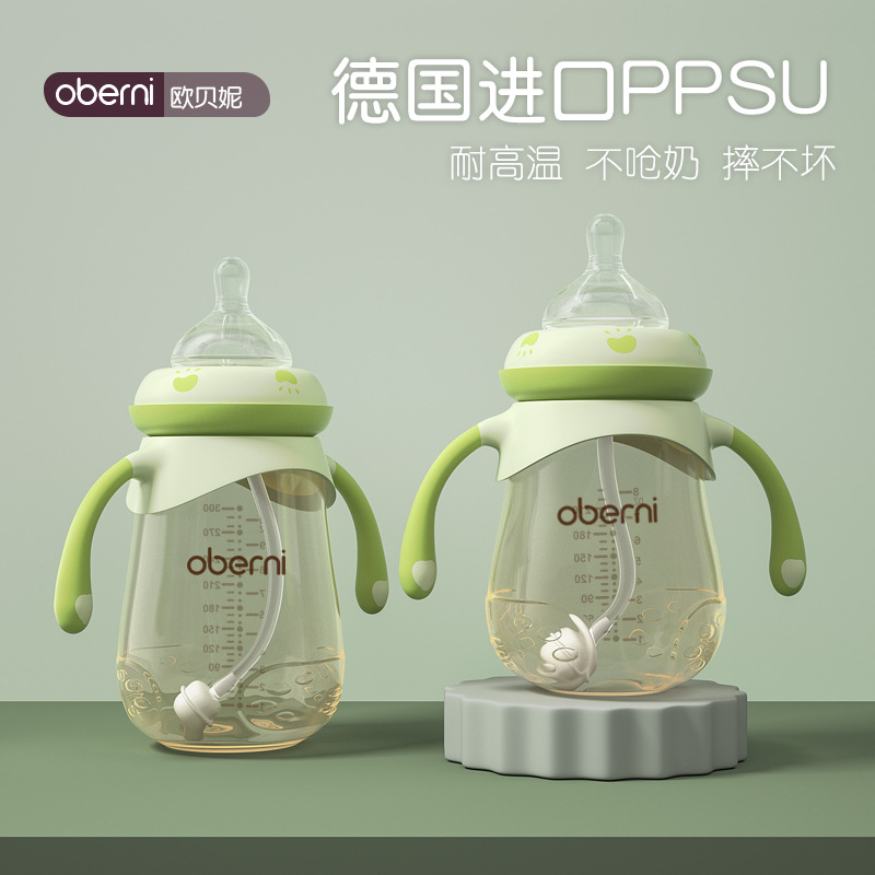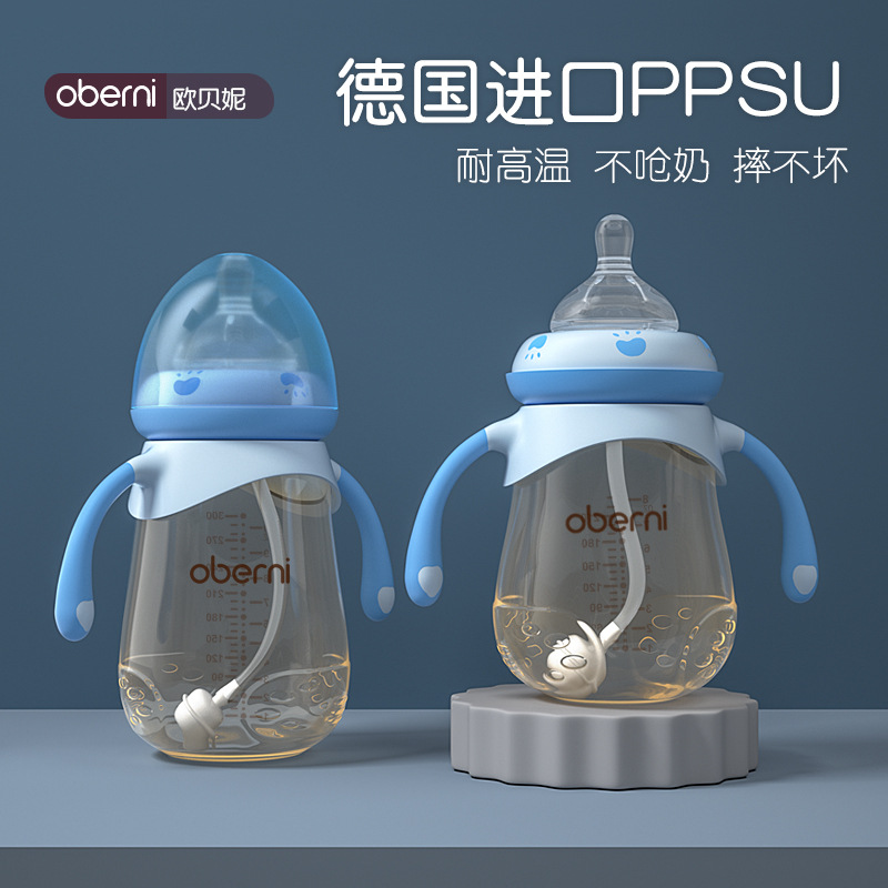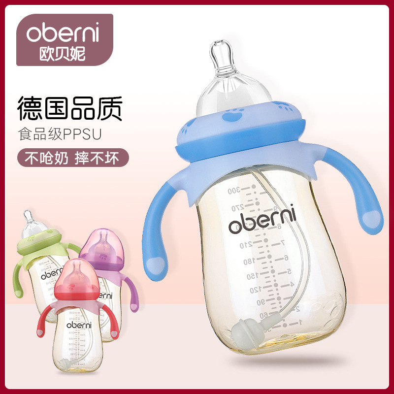 Aubernie oberni baby resistant to high temperature PPSU newborn baby bottle wide calibre anti-flatproof and anti-fall