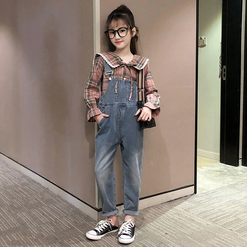 Korean children's spring and autumn clothes girls net red suit Yangpai 2021 new Korean version of the big child little girl holding baby bag pants
