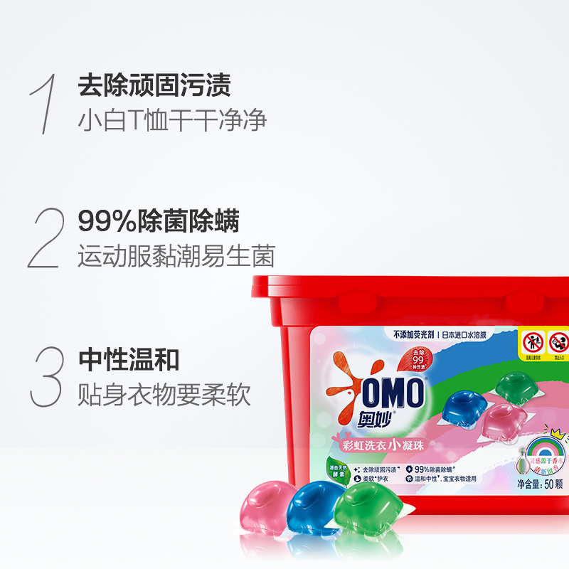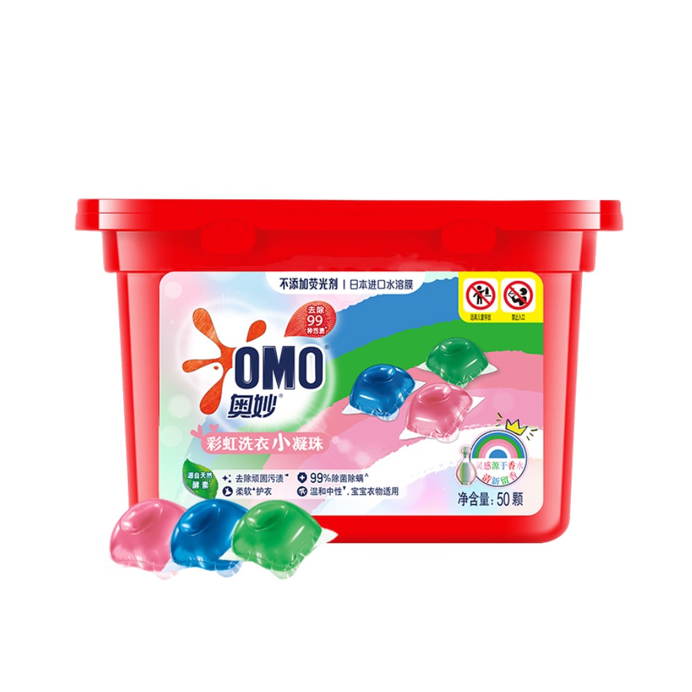 OMO laundry beads rainbow three-color sterilization and mites lasting fragrance laundry detergent flagship official brand